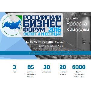 Российский Бизнес Форум 2016г «Экспорт и инвестиции» пройдет в Москве с 13 по 15 октября 2016 г. Один из самых успешных инвесторов и бизнесменов в мире, потрясающе точно предсказавший кризисы 2008 и 2014 года, Роберт Кийосаки станет специальным гостем Инвестиционного дня Форума 14 октября.